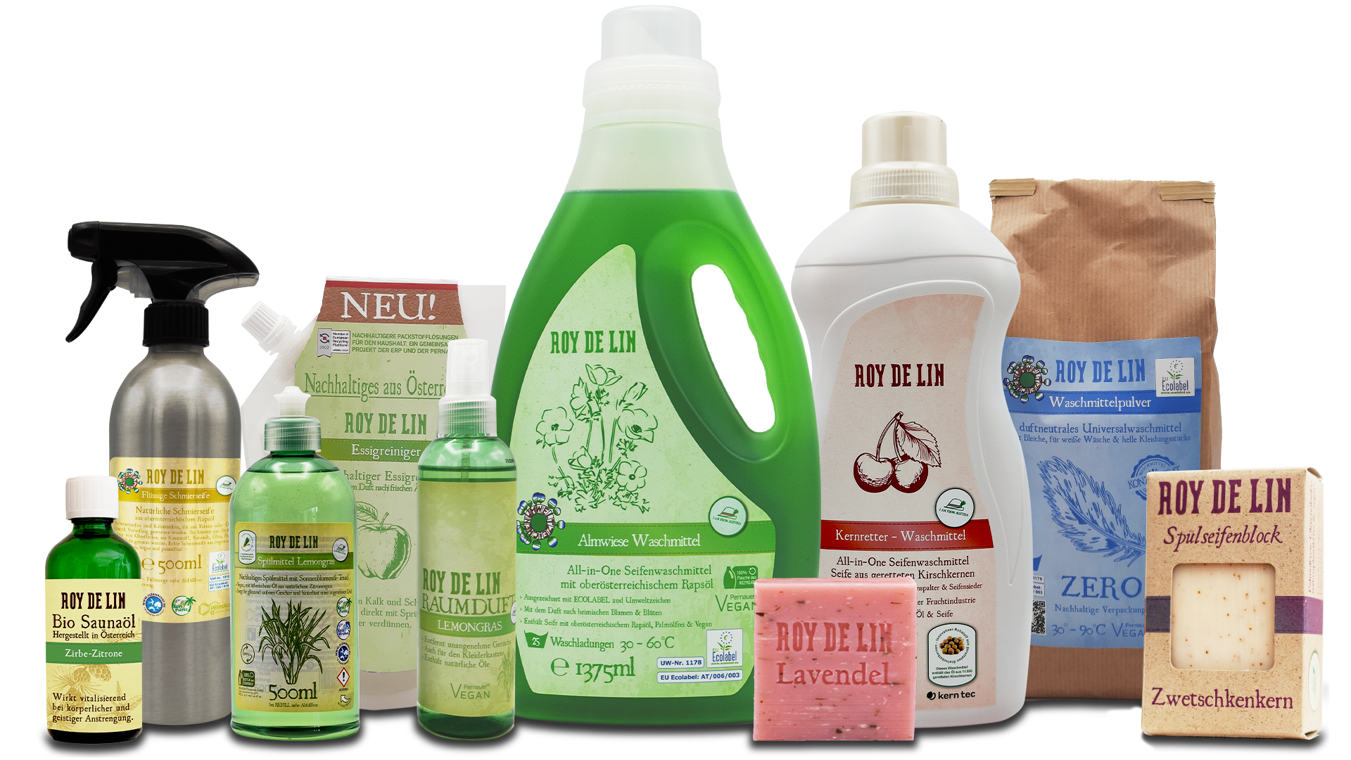 ROY DE LIN steht für alltagstaugliche, zertifizierte Wasch- und Reinigungsprodukte aus Österreich. Unsere Vision: die erste Wahl im deutschsprachigen Raum für wirksame, ressourcenschonende Pflege – nachfüllbar, materialschonend und transparent.